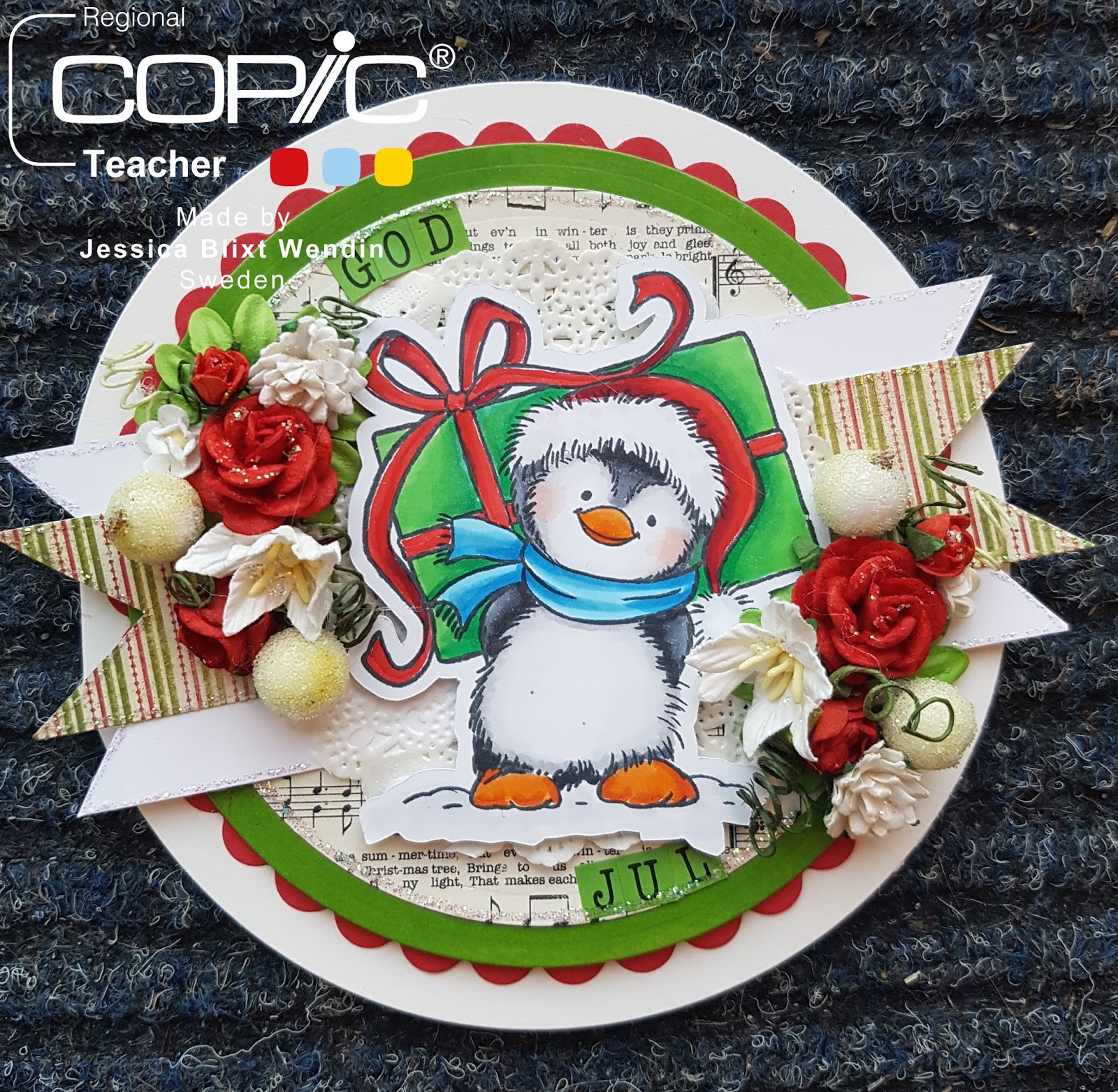 Idag vill jag vis er ett runt julkort med en väldigt söt liten pingvin från Whimsy stamps.